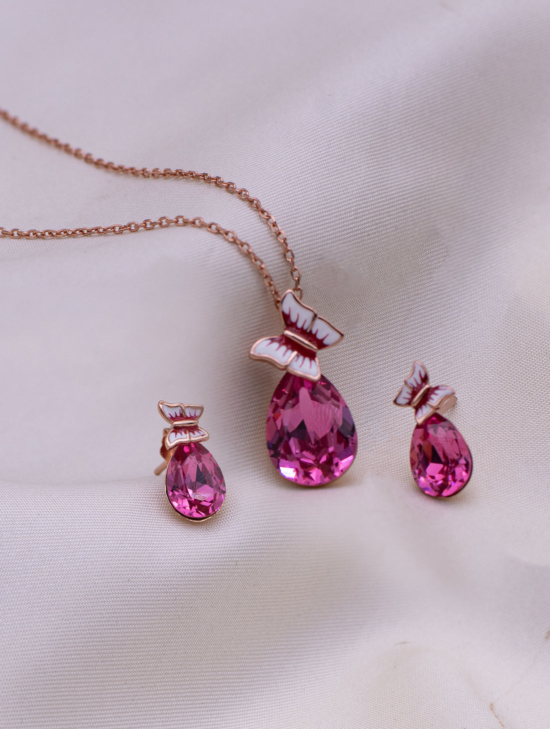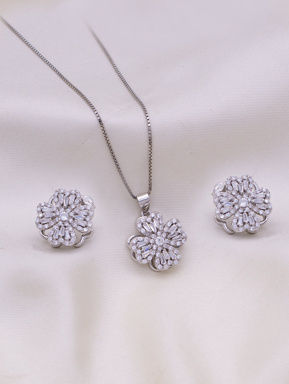 About this item-Elevate your elegance with our exquisite silver flower motif rotating pendant set. A...