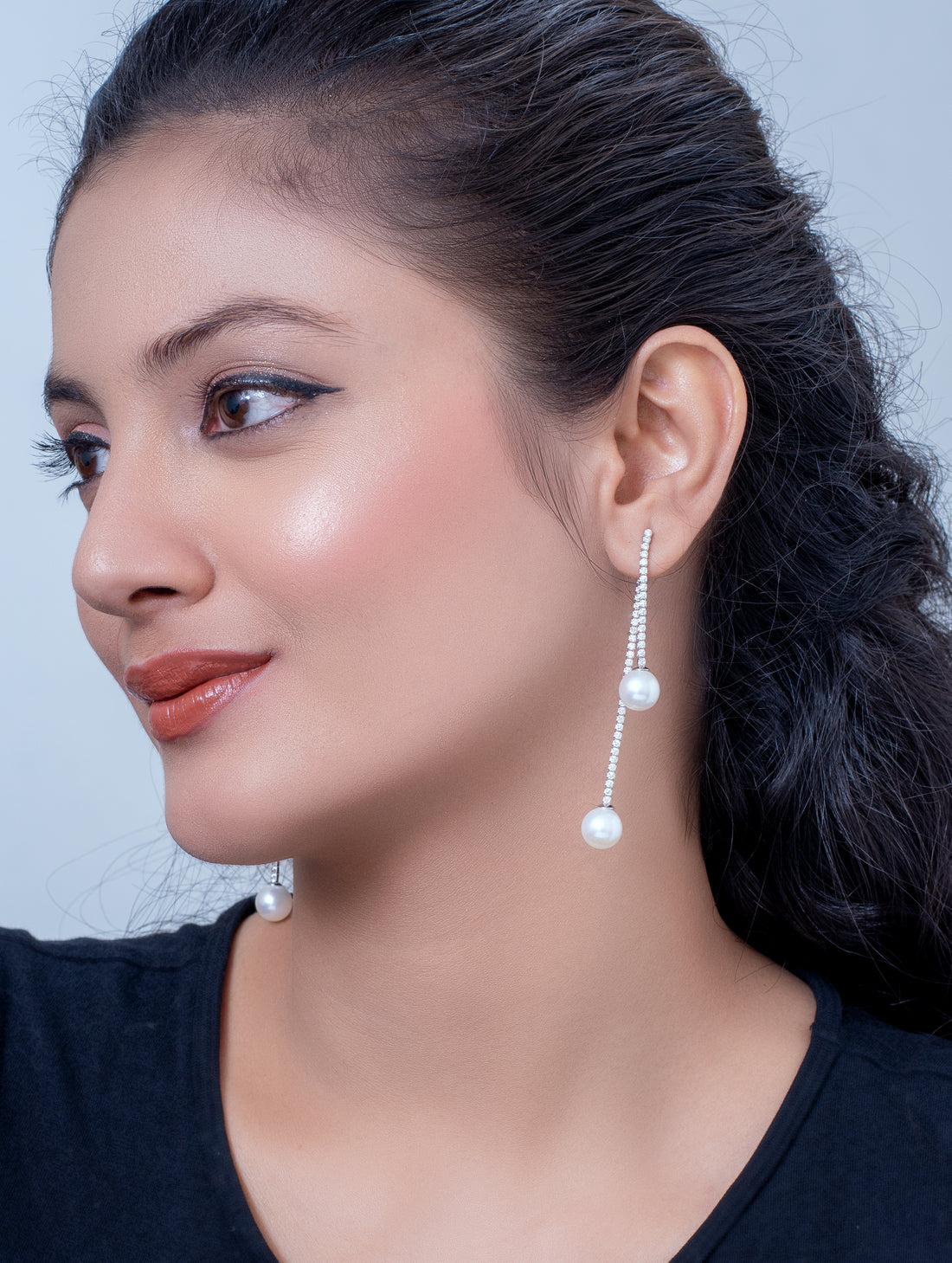 About this item-Elegance redefined Double-layer silver earrings adorned with delicate pearls β a perfect blend...