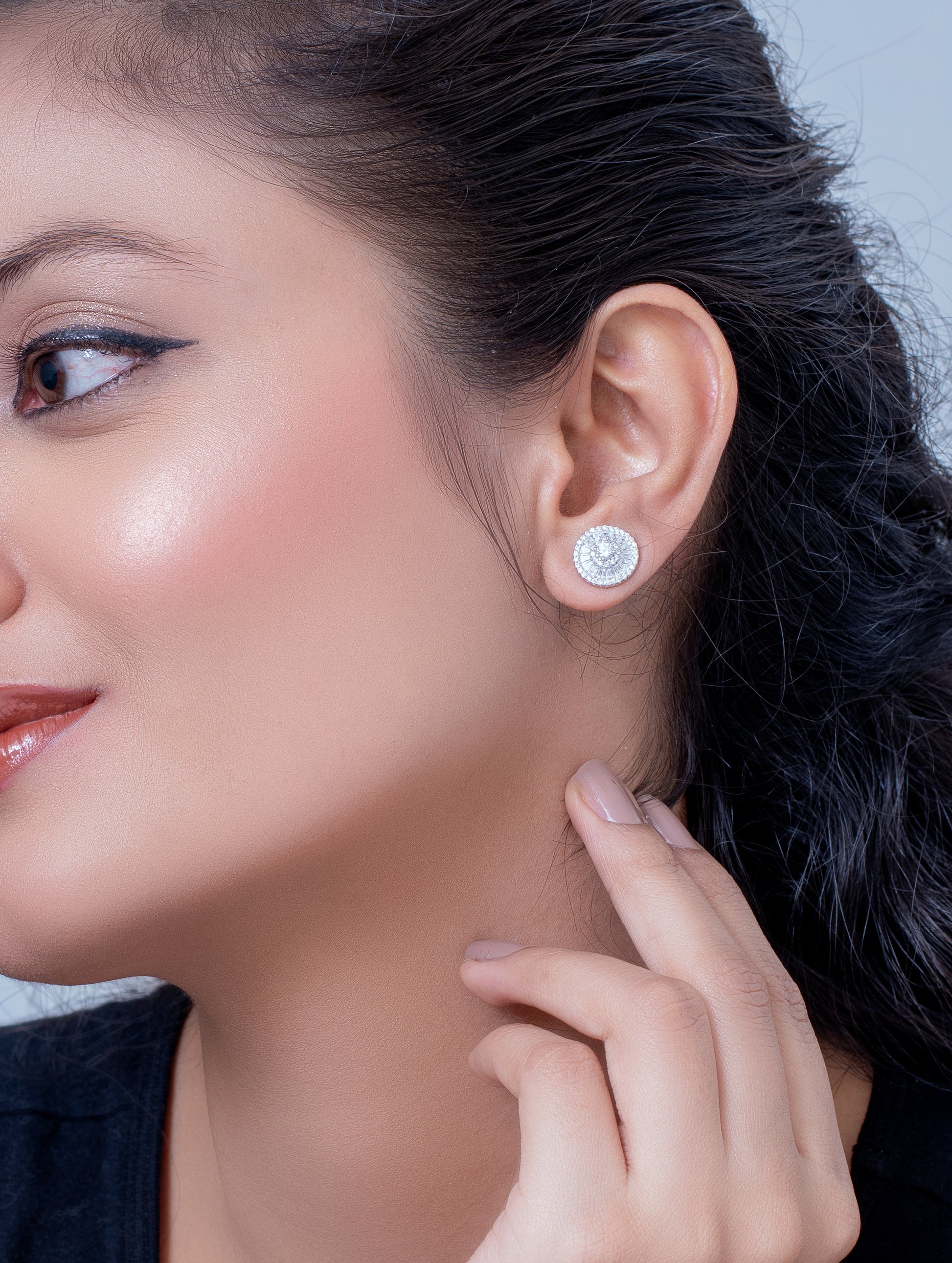 These stunning silver zircon studs in a classic round shape exude timeless elegance and sophistication. Whether you're dressing up for a night out or adding a subtle yet chic touch to your everyday style, these silver zircon studs are a must-have accessory.